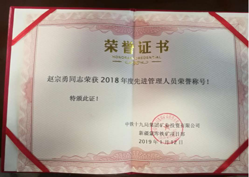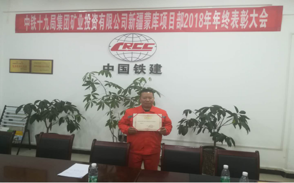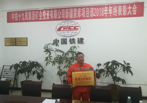1月13日,中鐵十九局集團投資有限公司新疆蒙庫鐵礦項目部召開2018年度精神文明工作會議及年度表彰大會,我單位為精神文明活動深入發展做出積極貢獻受到表彰。我單位被授予2018年度精神文明班組稱號。